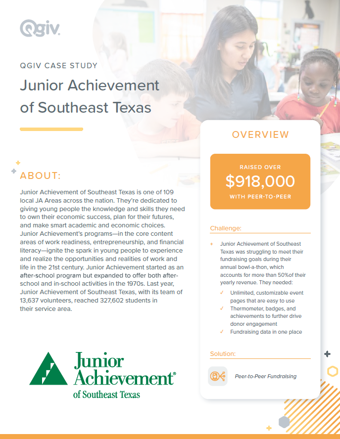 When Junior Achievement of Southeast Texas switched to Qgiv, they saw a significant increase in donations. They processed $918, 657 online through Qgiv. This was a 143.4% increase over their 2016 fundraising with Intelis.